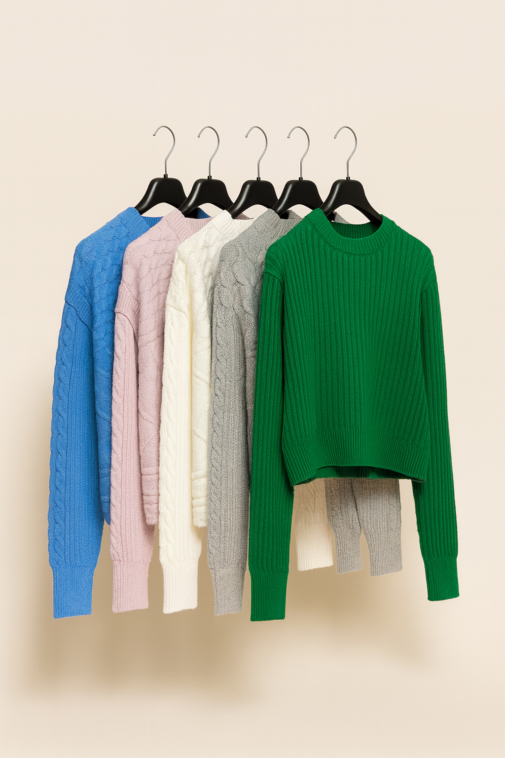 Soft and warm women’s cable-knit sweater featuring a textured front pattern and ribbed sleeves. Comfortable one-size fit suitable for everyday winter wear. Available in 6 beautiful colours.