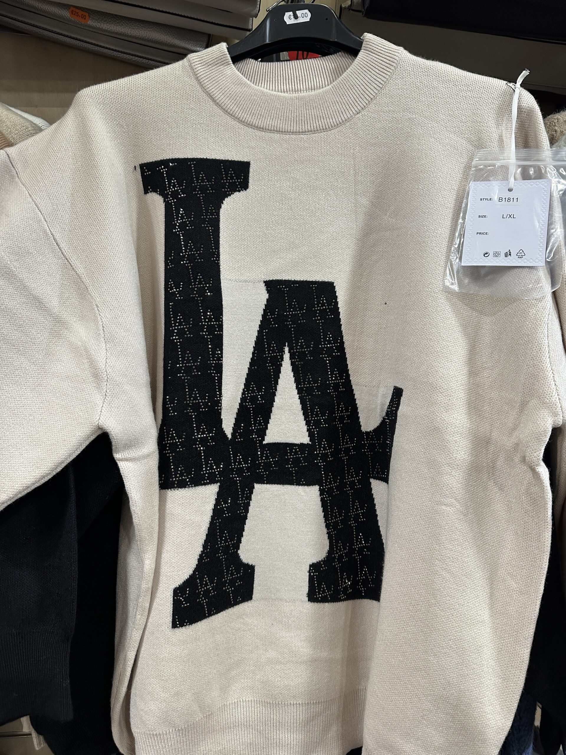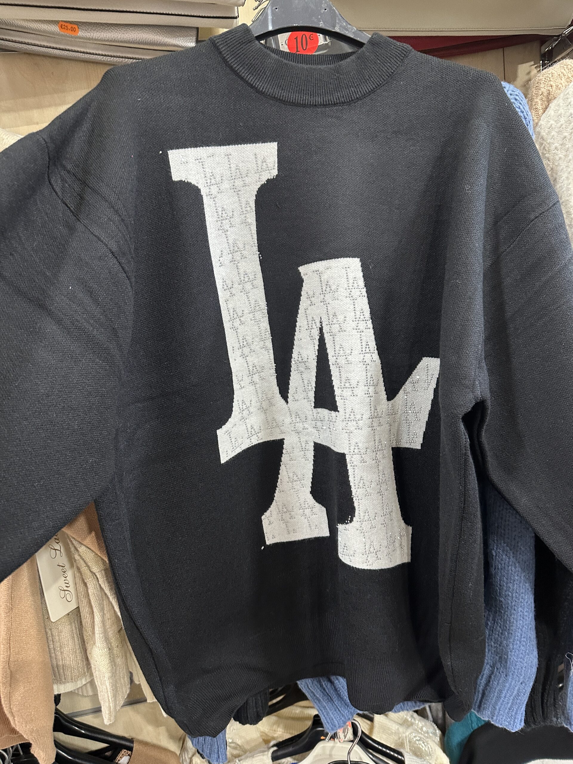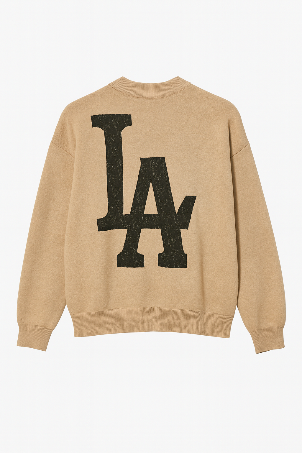 Made from soft knitted fabric, this sweater offers a relaxed fit ideal for daily wear. The back features a large black “LA” graphic with fine detailing, giving the piece a trendy, urban look.
