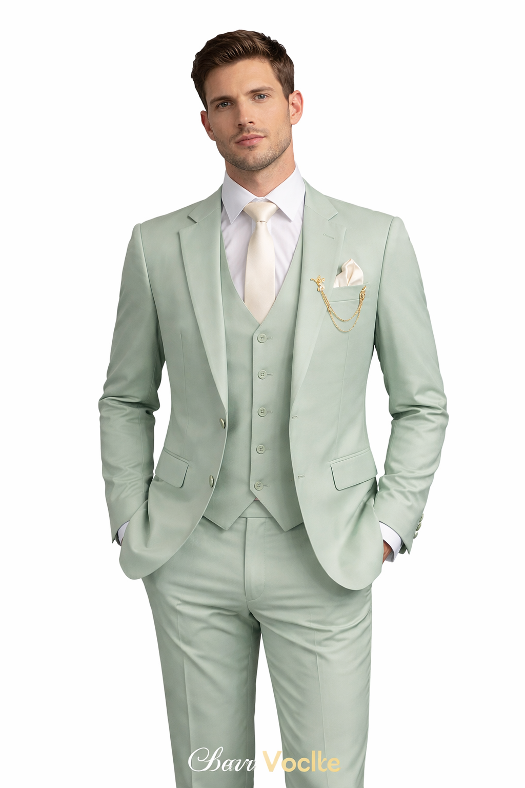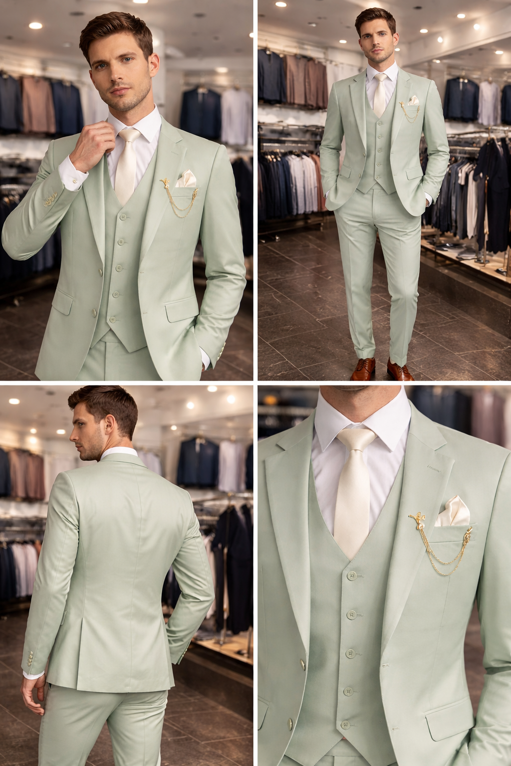 Chiq Mode Premium Mint Green 3-Piece Men’s Suit – Wedding & Formal Wear