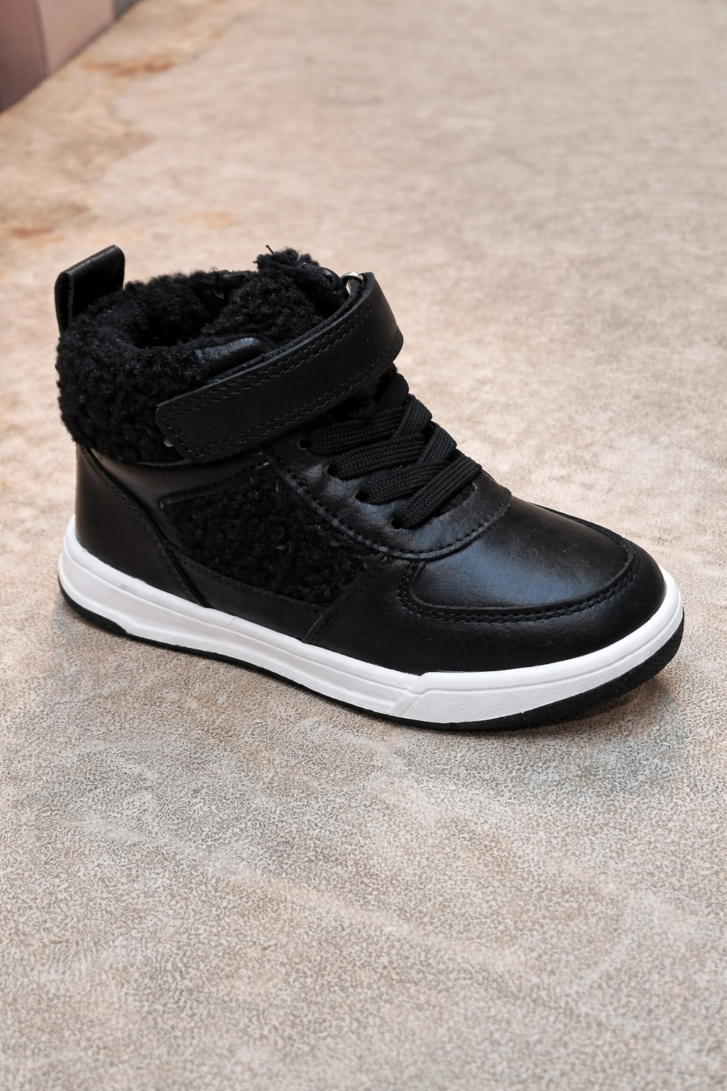 These kids black winter sneakers are designed to keep children’s feet warm, secure, and comfortable during cold days.